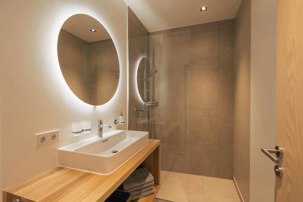 Apartment fünf bietet auf 44 m² Platz für 1 bis 4 Personen und befindet sich im Obergeschoss des Hauses. Mit seiner stilvollen Einrichtung und der hochwertigen Ausstattung erleben Sie hier höchsten Komfort und genießen zugleich den traumhaften Blick auf die umliegenden Berge.